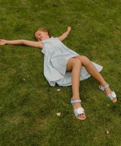 Together with the renowned influencer Trine Kjær, we have created a collection that celebrates childhood summer memories. Inspired by bright days, soft sand, and play in the sun, it combines nostalgia, creativity, and functionality in a timeless design. ‘roberta’ combines simplicity, elegance, and quality – a true tribute to the lightness of summer and blossoming beauty. – Made from 100% LWG-certified leather, supporting responsible leather production and eco-friendly tanneries – Chrome-free leather lining and insole provide a soft, skin-friendly, and comfortable experience for little feet – Flexible and slip-resistant outsole ensures durability and allows children to move confidently on any surface – Adjustable Velcro closure ensures a natural fit and makes it easy for even the smallest children to put their shoes on and take them off